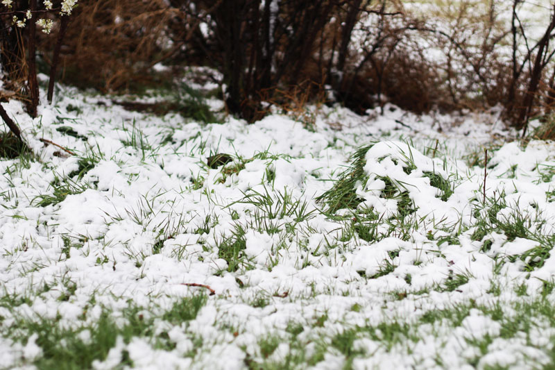 It's kind of a knock-back, this snow. I'd so been loving spring this year, the warmth, the sunlight. I couldn't believe this snow when I woke up this morning. But it wasn't like I hadn't been expecting it.