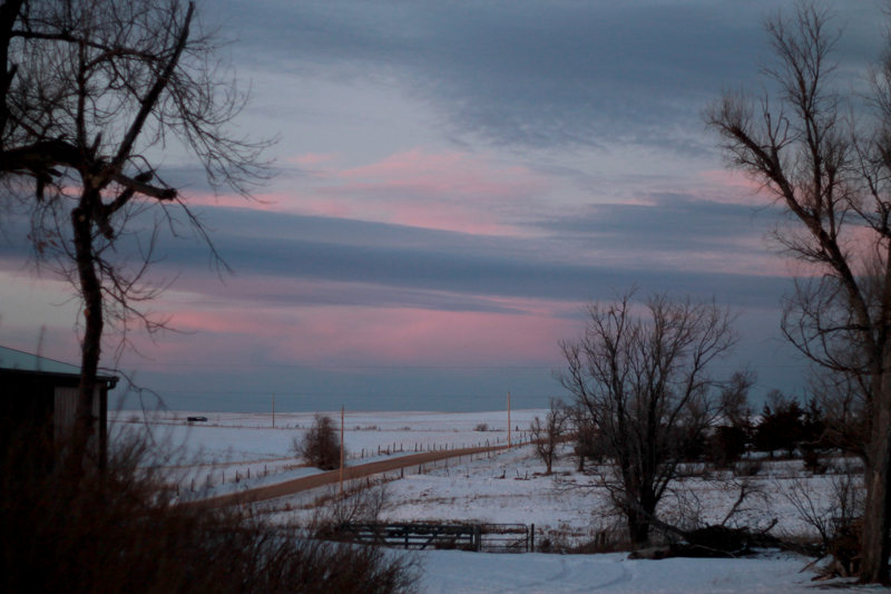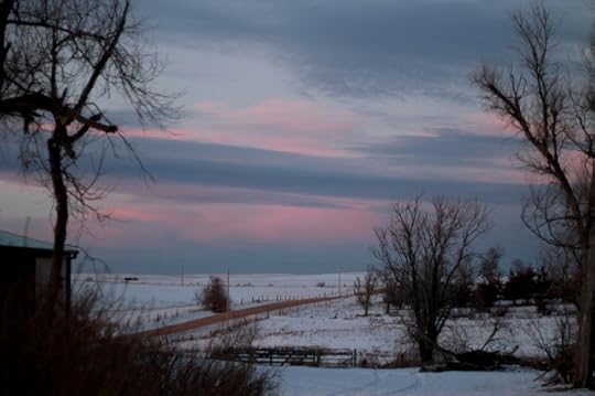 After a snow storm on the prairie, just the ordinary ones where you go to bed and in the night it falls, the day is gray the next morning, the prairie is still. Cold. The most silent it ever gets. No wind, not even a whisper of it in the trees.