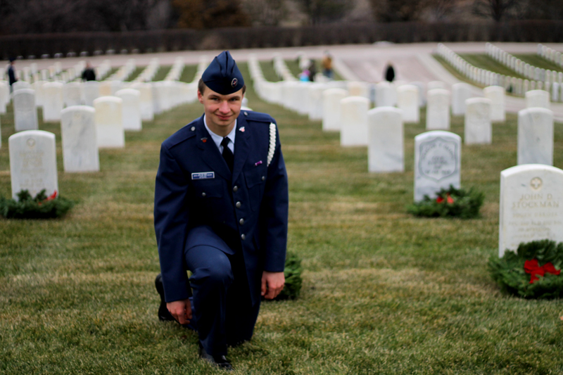 And then the boys line up, straight blue uniforms of the Civil Air Patrol. The young, ruddy cheeked boys with strong steps and sharp turns, braving 40 degrees and wind with bits of snow.