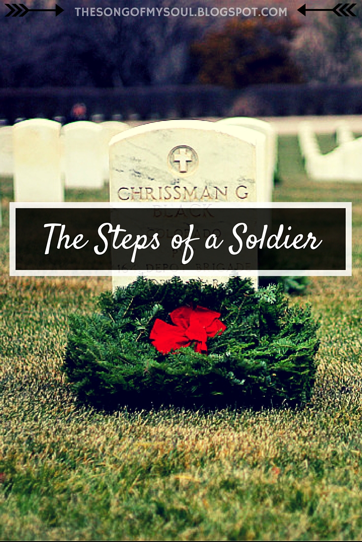 The veterans--they take the wreaths and secure them on the stands. Their steps less sure, their corners less quick, and you can't hear the click of their heels, nor do they about-face as eagerly as the young. One man walks with a cane, and the frail, wobbling steps of the last man tells stories of the years that have been lived before you. But you cannot mistake the salutes and you cannot take it from them. That they're standing on a hill, and they know, and the world doesn't show up, but they're here regardless. The world may turn stagnant to praise of them, but there they will be, saluting the dead, dying for the living. You can't mistake the steps of a soldier.