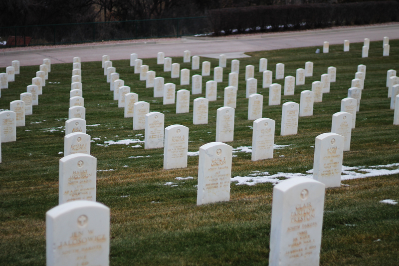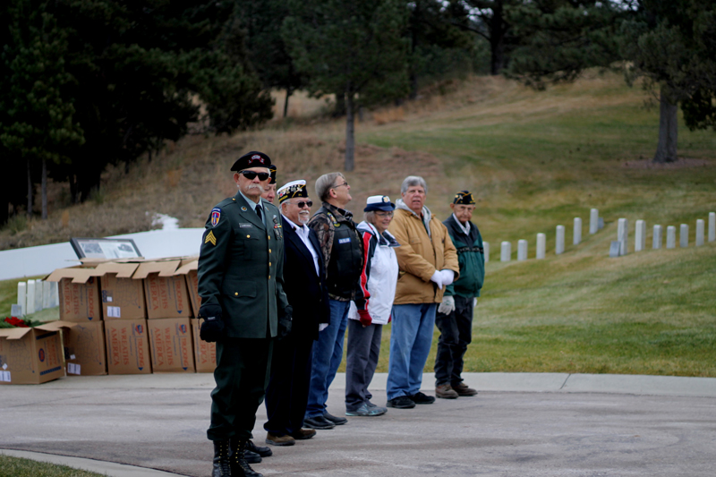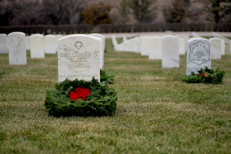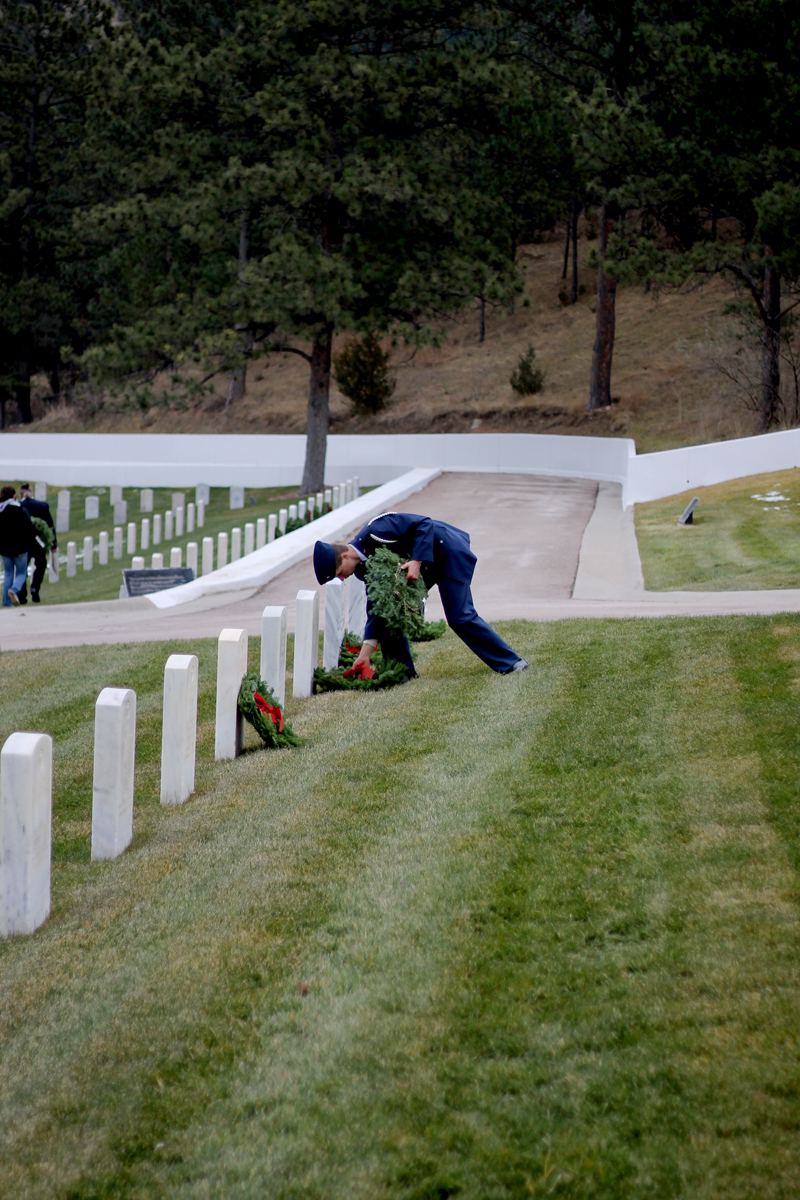 Today we're at another cemetery. It's nestled on a sloping green hill, surrounded by pines. There aren't very many people here, just a handful to put wreaths on the graves of those who've given . And it's the veteran's town? Where is everyone?