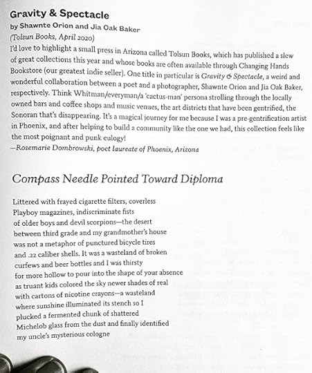 Inside the magazine, there was a wonderful write-up by Phoenix Poet Laureate Rosemarie Dombrowski along with one of my sample poems from the book: