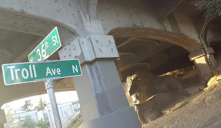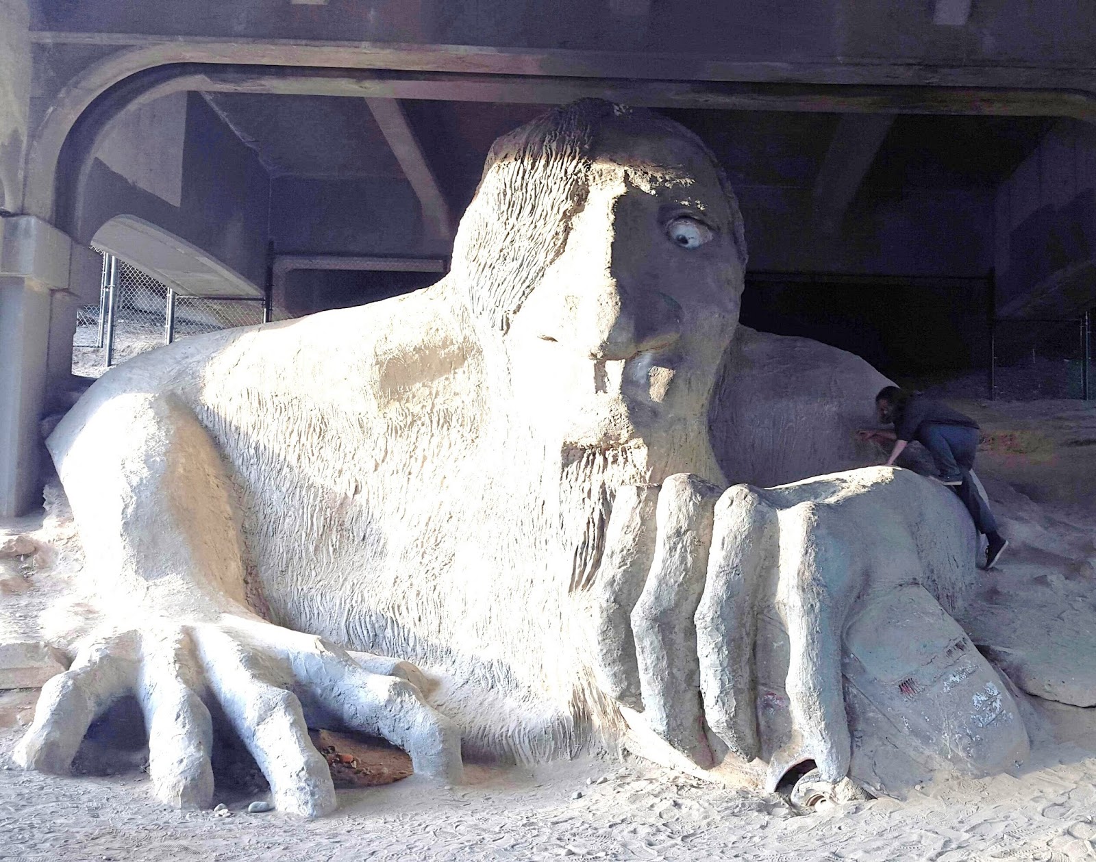 I had some kind of Black Pepper Butterscotch latte, so I was ready to perform. But first we detoured to see the Fremont Bridge Troll on the way out of town.