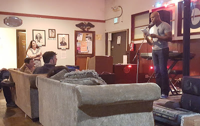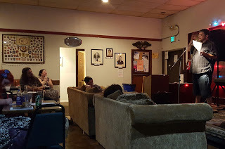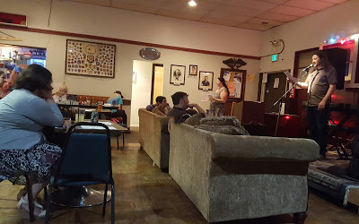Upon reaching the Auburn Station Bistro in the nick of time, we were informed that the bistro had gone out of business the day before!!! But the owners agreed to come open the doors for us to do that final reading. I know what it's like to lose several of my most beloved venues in Phoenix, so I completely understood what these regulars were feeling. It was sad but also an honor to read at this final event and try to send it out on a positive note.