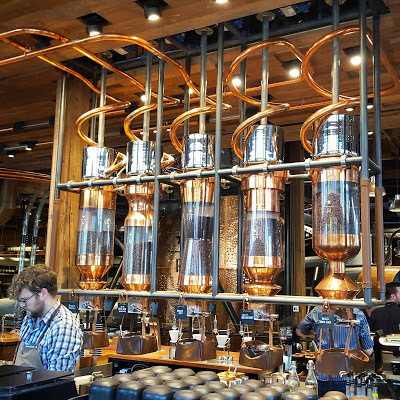 We finally made it into town with about 45 minutes to kill before hurrying to the Auburn reading, so we had a delicious bite from a local sandwich shop and popped into a Starbucks Roastery and Tasting Room that was next door like a Willy Wonka factory for caffeine.
