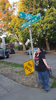 Since I had never visited Seattle, Sally K. Lehman (written about in my Day 2 blog post) generously offered to drive Jessica and me up in the morning so we could all have lunch in the Emerald City, then check out all of the stereotypical touristy stuff before my reading. I vowed to do it all. Throw some Pike's Place Halibut from the top of the Space Needle against the Gum Wall while listening to Soundgarden's Badmotorfinger. Nothing would be too touristy for me.