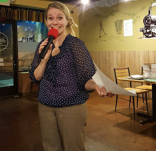 The open mic was emceed by the multi-talented and charismatic Emilie Rommel Shimkus