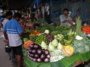I had a great time doing research in Kolkata when I was gathering information for An Exotic Heir, as well. Travelling around Kolkata, walking through the Victoria Memorial’s museum which gives a wonderfully thorough history of the city. Reading diaries of the English who lived in Calcutta during the Regency period. All that history! And then it struck me, as I accompanied my mother-in-law to the bazaar one morning to buy fish and vegetables, vendors have been hawking their wares in bazaars in exactly the same way for over 250 years! Yes. When you go to buy vegetables, they are frequently laid out on the ground on banana leaves just as they have been for hundreds of years. Sellers still weight the fruits and vegetables using hand-held scales dropping weights on one side to balance the precariously heaped vegetables on the other. There are only two adaptations which I have seen – bare electric light bulbs which are strung up in the evenings (although not all sellers have them, some still sell by candle light) and the cell phone which is tucked away under the seller’s legs because everybody has cell phones in India!