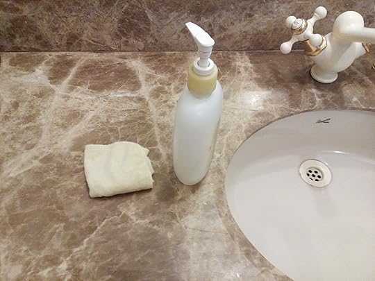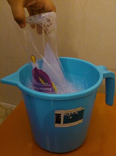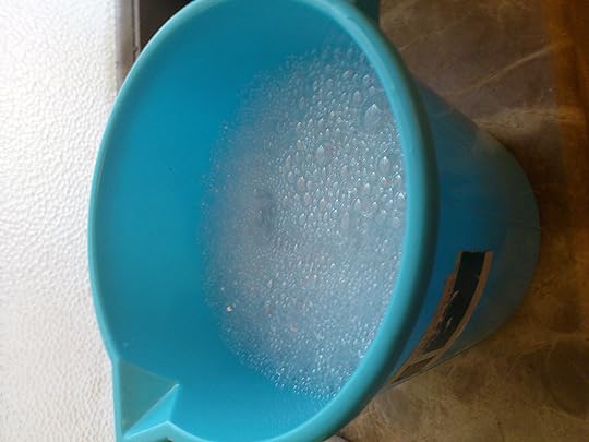 Mama took a bathroom mug, put some soap in it and filled it up with water.