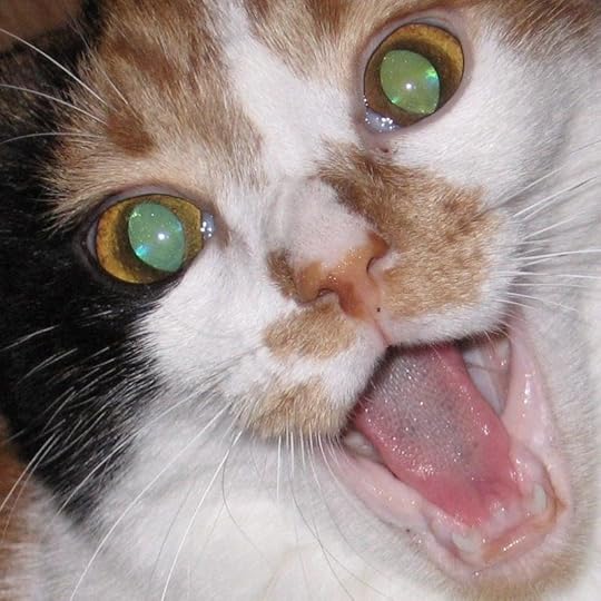 Tania was getting ready for Karishma's birthday party. She was trying on the eagle mask to see if it was comfortable. At that time Kazoo walked by and saw Tania in the mask. Kazoo was terrified. She started whimpering and her tail became really fat. It was puffed up to 3 times its original size. Tania had no idea what happened to Kazoo. She called mama. Mama took a minute to realize that Kazoo was frightened of the mask. By now Kazoo was hyperventilating.
