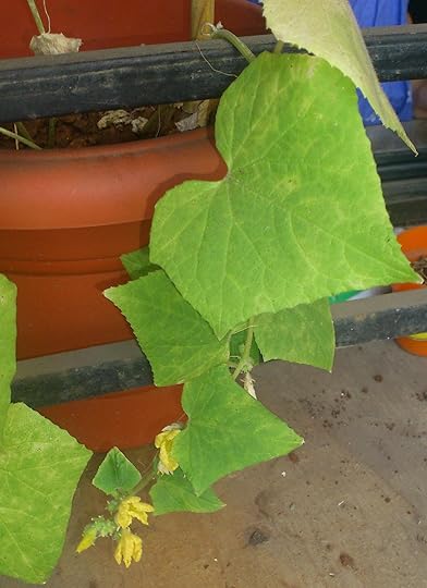 Look! It already bears pretty little yellow flowers. So hopefully Tania will soon have some juicy, home grown cucumbers to eat.