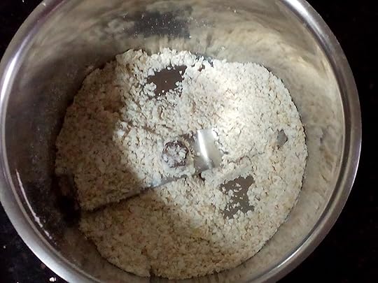 1 tbsp coarsely ground walnuts (optional)Mama only had regular oats so Tania helped mama grind them in to a powder in the mixer.