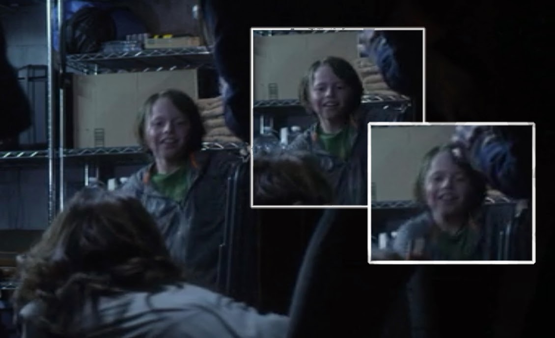 The boy is having a blast. Now, I’m not one for scaring children for the sake of a movie (Okay, so maybe I am. I did once send my kids through a trailer park, roadside Halloween Horror house that may or may not have been run by the people who inspired the events of House of 1000 Corpses, just so I could get a great home video of them running out the exit pissing themselves) but another take was in order here, maybe? A different angle? They linger so long on this kid’s goofy grin, and everyone else’s backs, that you have no feeling of fear or impending doom for the boy. If the child actor can’t carry the scene, why is the camera pointed at his face and his MOTHER’s rear end?
