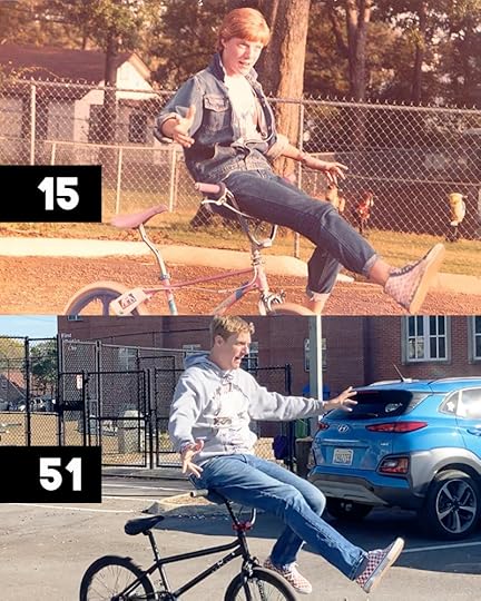 Inspired by Brian Tunney and his zine Larry's Donuts is Dead, I've been wanting to restage this photo from a year-book shoot in 1986. Though you can't tell from the background, I went back to the same church parking lot where the original was taken and did the barhop again. Tunney does this with famous BMX photos and spots from old magazines.