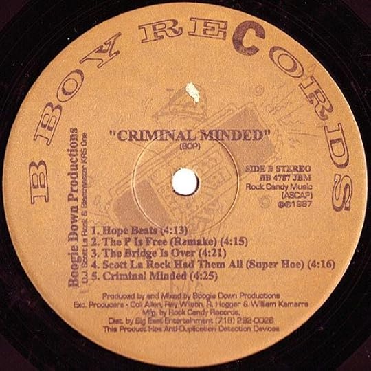 a.image2.image-link.image2-712-712 { padding-bottom: 100%; padding-bottom: min(100%, 712px); width: 100%; height: 0; } a.image2.image-link.image2-712-712 img { max-width: 712px; max-height: 712px; } Boogie Down Productions Criminal Minded, side B, track 1: “Hope Beats.”I distinctly remember that the label on the record spinning around on Thomas’s turntable incorrectly named the song “Hope Beats.” An interesting mistake given that DJ Scott La Rock was killed just months after the record came out, prompting KRS-One to start the Stop the Violence movement. Where Criminal Minded is often cited as a forerunner of gangster rap, KRS-One was thereafter dedicated to peace. I’d heard hip-hop before, but the unfamiliar familiarity of the “Back in Black” guitar samples in that song make that particular day stick in my head.