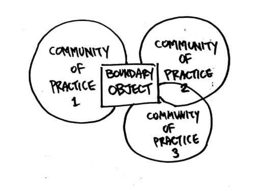 My Sharpie sketch of a Boundary Object in use among 3 communities of practice.The members and fans of subcultures—groups united by similar goals, practices, and vocabularies—represent what Etienne Wenger calls communities of practice. To translate differences and aid communication between these communities, they use what Susan Leigh Star and James Griesemer (1989) called boundary objects. A boundary object can be a word, concept, metaphor, allusion, artifact, map, app, or other node around which communities organize their overlaps and interconnections. These connective terms emphasize groups’ similarities rather than their differences, allowing them to communicate and reduce confusion between their disparate vocabularies. Boundary objects between different communities of practice open borders once inaccessible, circulating ideas into new territories.