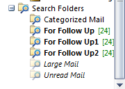 before I realized that Search folders are collected at the bottom of the folder list.I created three of them before I realized where they were. Now you won’t have to go through that.