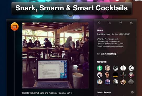 I've succumbed to the call of the Tumblr. I don't know why. I'm not certain of its purpose. Though it does seem to be easily fed by other social networking sites and vice versa. So, feel free to follow me at...Snark, Smarm and Smart Cocktails!