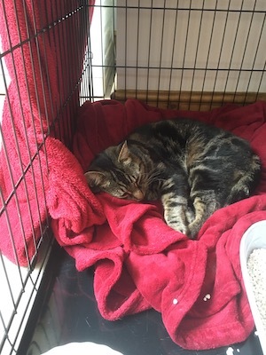 Apparently cage rest is the standard treatment for cats with these sorts of injuries – the vet told me you can’t put them in a cast or they’ll do their best to scratch it off and cause more problems, so the best you can do is leave them to heal naturally and stop them jumping around. The normal time for these sorts of injuries is six to eight weeks, so this is going to be a long haul.