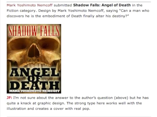 You know, I'm getting more serious about offering to hire myself out to design ebook covers for other people. Super pro Joel Friedlander from TheBookDesigner.com had this to say about the artwork I created for SHADOW FALLS: ANGEL OF DEATH: