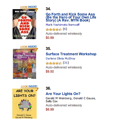 So that's SEVEN, count 'em 7, bestseller lists that these three books currently sit on. Books that I don't really actively promote much, if at all. Am I stoked? Hell yes!