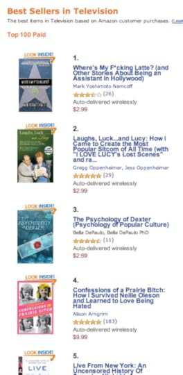 In actuality, Where's My F*cking Latte is on 3 different Amazon bestseller lists: Kindle bestsellers for Movies and Television and Amazon's overall bestseller list for all books (ebooks and print) for Television (currently #6)