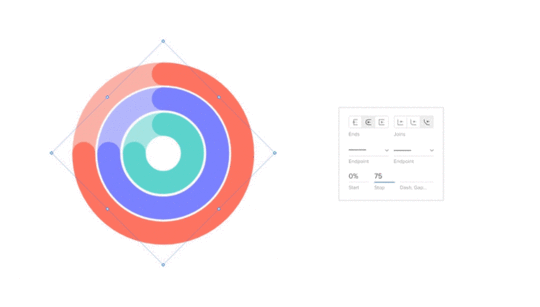 Additionally, you can set the shape of ends and joins for any path, and decide whether a path should be solid, dashed or dotted with precise control of each dash and gap length.