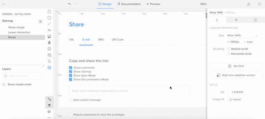 It serves all the purposes of a mockup — finalizing visual decisions, presenting to clients, etc. — but with the bonus of some limited interactivity. In some tools, you’ll be “stitching” together screens through the creation of linked hotspots. As users click on the hotspot, the next page will load. Instead of the “human computer” required of paper prototypes, the prototyping app does all the work.
