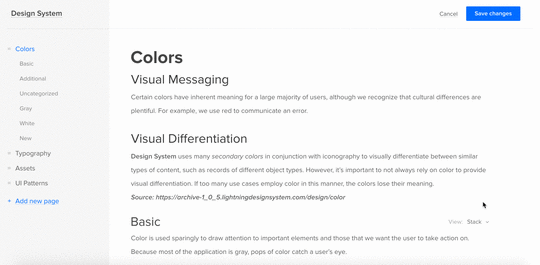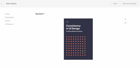 A new documentation page is automatically created and always stays in sync with your library. If you add a new pattern or a color, it automatically appears in your design system.