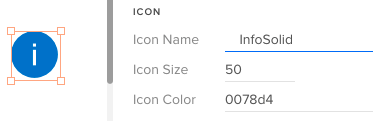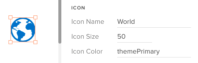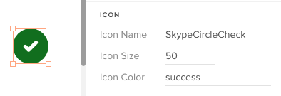 Parsers converted the string “50” to an integer and validated the hex color, adding back in the required # mark. Our Merge wrapper also trimmed leading and trailing whitespace from the icon name. (UXPin Editor and Props Panel view)