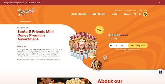 On-brand color palettePopcorn eCommerce brand Popcornopolis uses bright colors to increase brand awareness and highlight each page’s most important features. Designers have also done a fantastic job of keeping the most important content and CTAs (call-to-action) above the fold on product pages, enabling users to get to the checkout and complete a purchase fast.