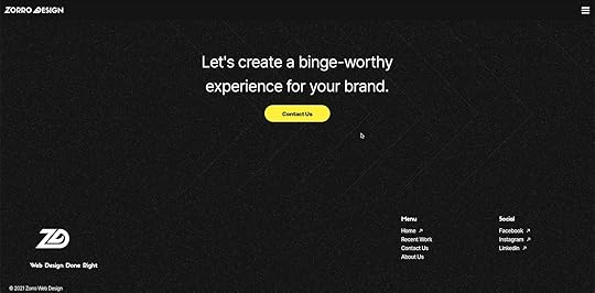 Showcase their workGenerate new leadsUS-based Zorro Design uses a black and white footer design with a bright yellow CTA taking users to a contact form. Zorro’s designers have designed the footer perfectly, so the CTA sits in the center of the screen, with lots of surrounding whitespace screaming “CLICK ME!”
