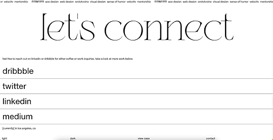 As a remote worker, Alex also uses flashing text to tell visitors where he’s currently working–in this case, it’s Los Angeles.