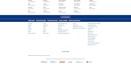 Booking.com is one of the world’s biggest online travel agencies, with over 28 million accommodation listings in more than 70 countries. Booking.com’s goal is to sell accommodation, but they also want to onboard new properties, so their primary footer CTA is to “list a property.”