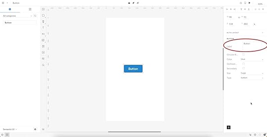 When we add that Semantic UI button to the canvas and select it, those same properties appear in UXPin’s Properties Panel. We can adjust these properties to change the button’s styling instantly.