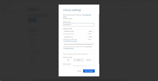 Library name: Semantic UI – The Library name has no impact on the importPackage details: semantic-ui-react – must correspond to the Semantic UI React npm registryDependency package name: semantic-ui-css – Semantic UI React requires the Semantic UI CSS dependency to work in UXPinAssets location: https://cdn.jsdelivr.net/npm/semantic... – required for styling Semantic UI React propsLeave everything else as default and click Save Changes.