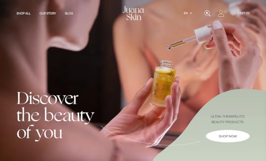 Designers use color to highlight the product’s primary benefits and CTAs for each page design. Juana Skin uses arrows with animations throughout the website to draw attention to important content and CTAs.