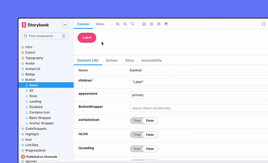 Automated documentation generationAnother great feature of Storybook is its ability to create your basic documentation automatically based on your source code. This helps tremendously with sticking to a single source of truth and is a huge time saver.