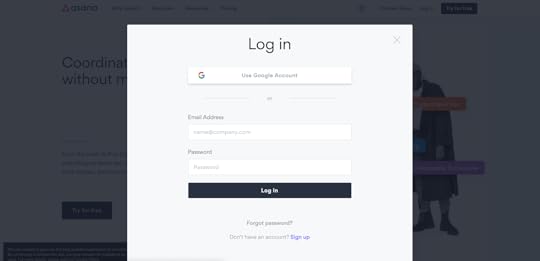 Ler’s use asana login as an example. It’s a user-initiated modal that doesn’t launch until the user asks it to. Asana must ask several questions to create your account, including: