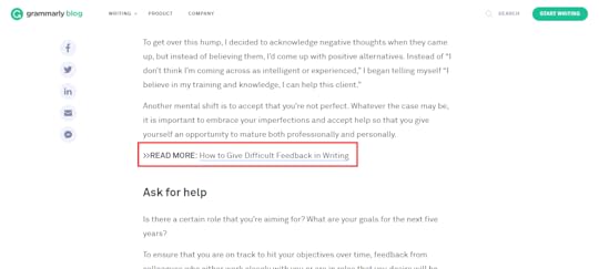 These are links on webpages or blog posts that point to other relevant content on other webpages. Contextual links are useful in showing users related content. In the context of a blog post, contextual links can be used to point users to other blog posts that have similar content. Grammarly does this in their blog post as shown below.