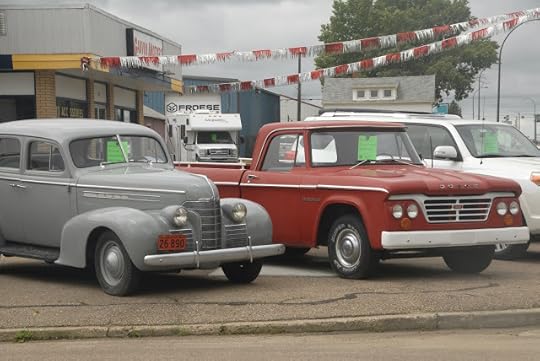 from Alex Emond, in southern Saskatchewan:" Driving past Gauvin Motors in Swift Current, I was surprised to see these vintage vehicles out on display & for sale. The Olds looks amazingly original and well-preserved. I see that it has the push button radio and a clock, desirable options. The upholstery looked just fine. Well-cared-for. The red truck is something you just don't see. (Oh, AL does, like this Dodge D200 we caught in West Texas. And Alex himself found this Fargo 100 in Saskatchewan a while back.) "I think that they called this style "Sweptside", and I guess that the thing to do is buy both of them–one for chores, one to drive to church."