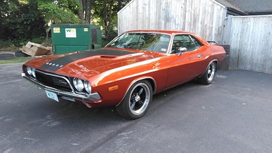 from Reid Cunningham: "When I dropped our car off for an oil change, this was behind the garage. 72-75, 440 Challenger with an automatic. I am usually a fan of factory wheels but these aftermarket were perfect for the car. The pictures don't do justice to how good this car looked up close. Muscle cars were on there way out by this time and power was down, but this would have still been an exciting experience."