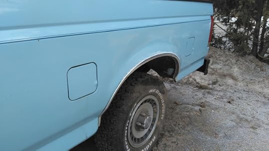 From Reid Cunningham: "Circa 1990 Ford F-150 in Boscawen NH. An old-fashioned work truck hopefully getting what it needs to get back on the road. It looks to have had a quick repaint. The popped hood, lack of wipers and a chunk of firewood under the rear wheel to keep it from rolling indicates it has a way to go. It's location in front of the repair shop is a hopeful sign. 4x4, 4 speed manual, bench seat, base trim and the two fuel doors for dual tanks suggest a utility-oriented truck.