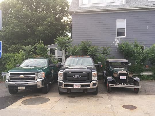 Supersize me? How did everything in this country get so...large? Caught the trio above at a filling station/repair shop Cambridge MA. Here's a Model A we met up in Nova Scotia a while back. And a Model A Town Sedan in Maine. History of the Model A trucks at Curbside Classics.