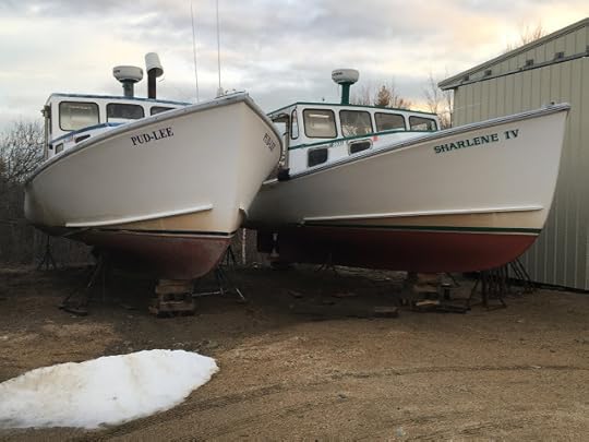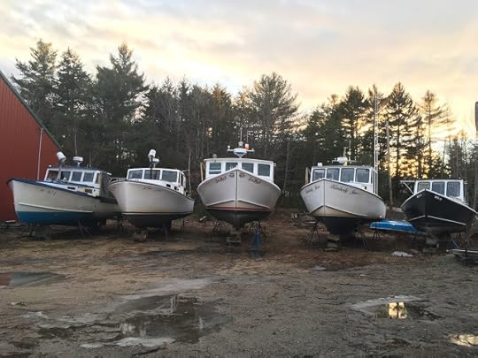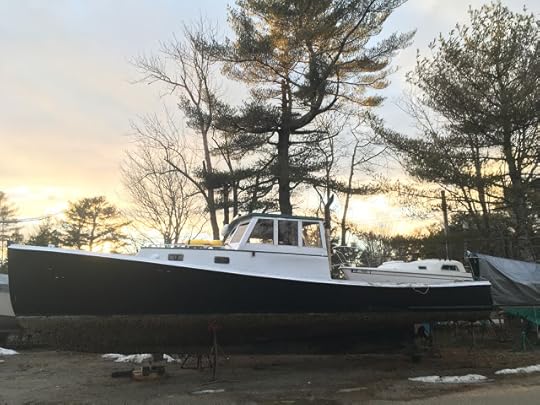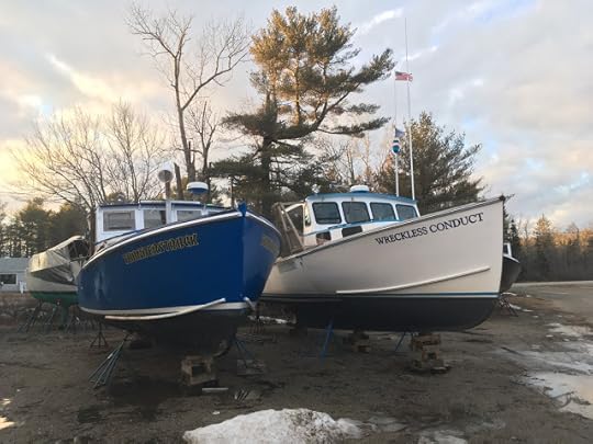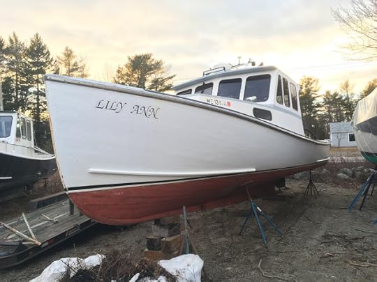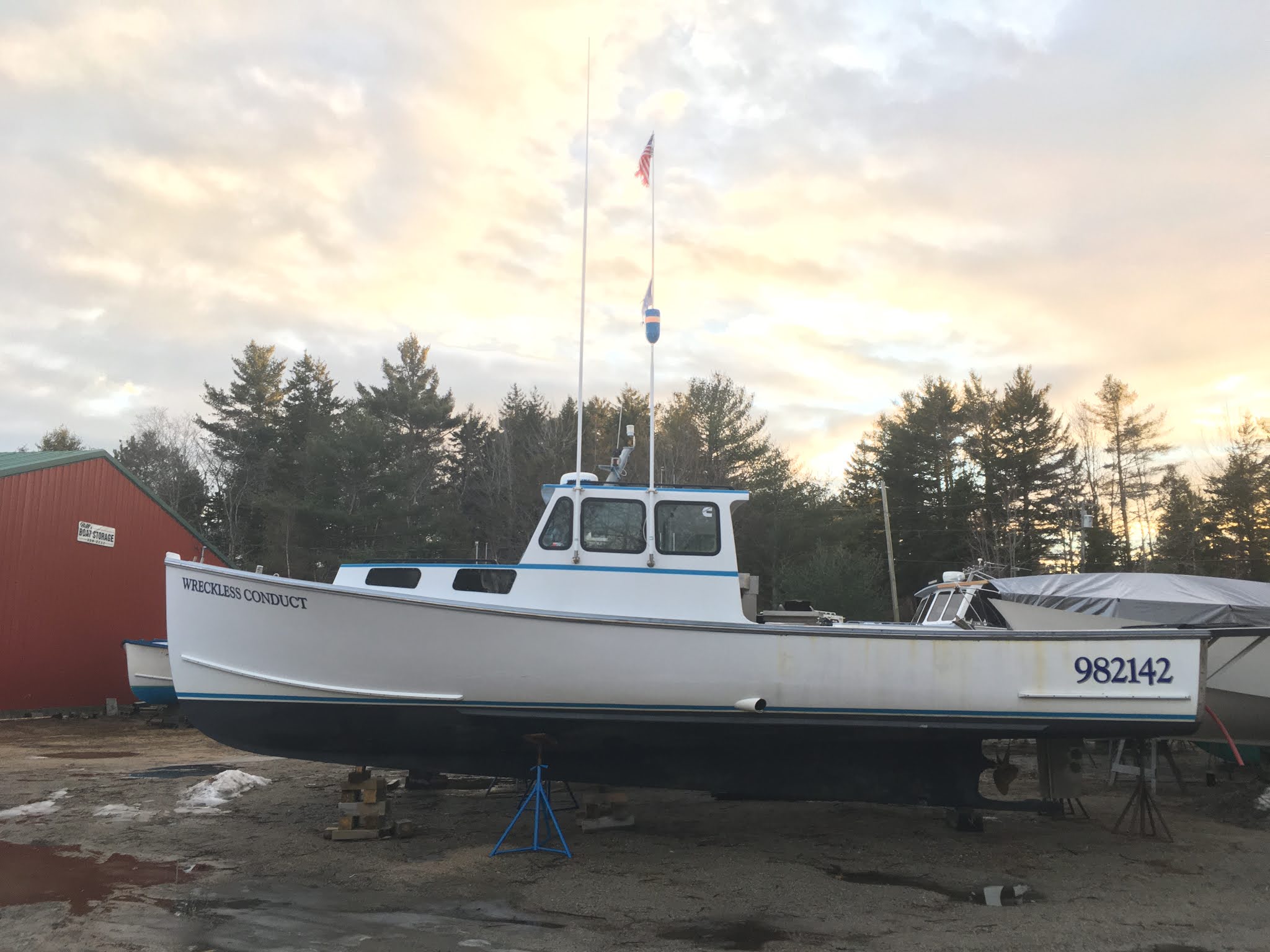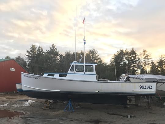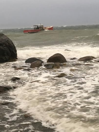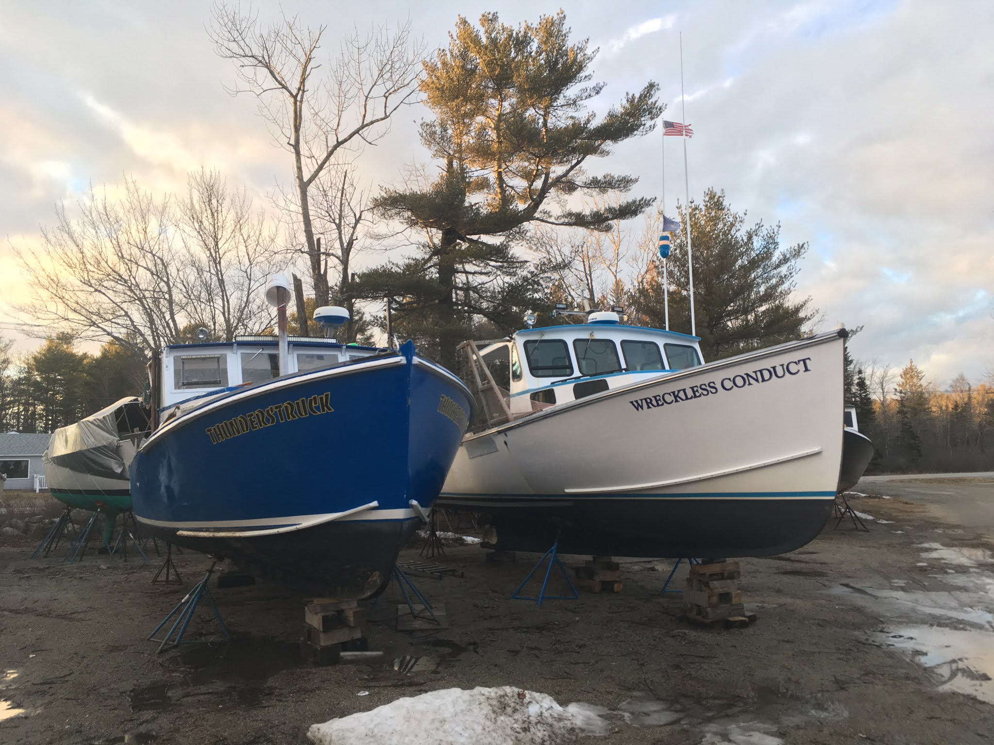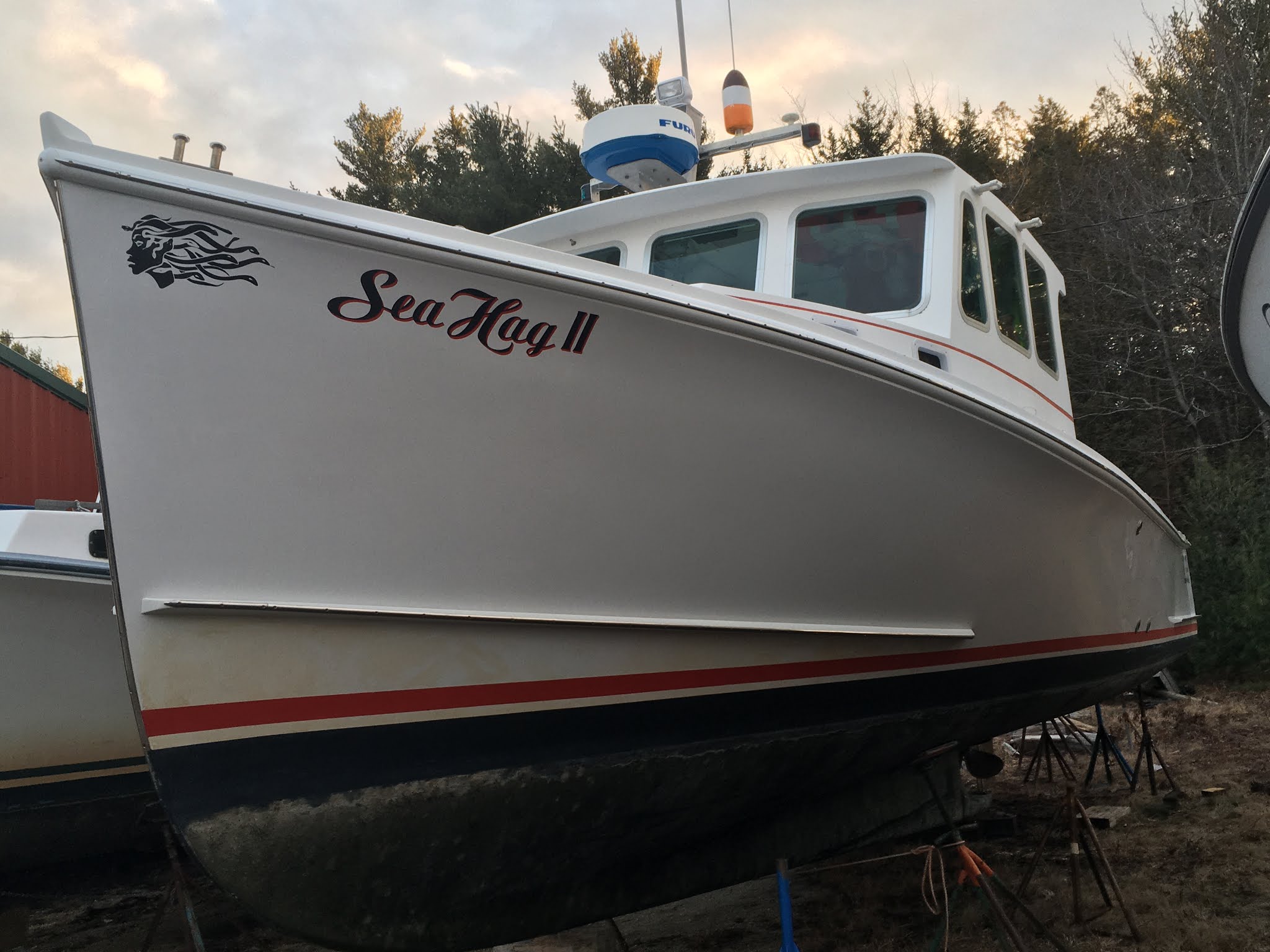 Blowing maybe E37k at a mooring off Dodges Wharf Road in Blue Hill Bay. Some days it's tough being a lobsterboat. Here she is in calmer weather.