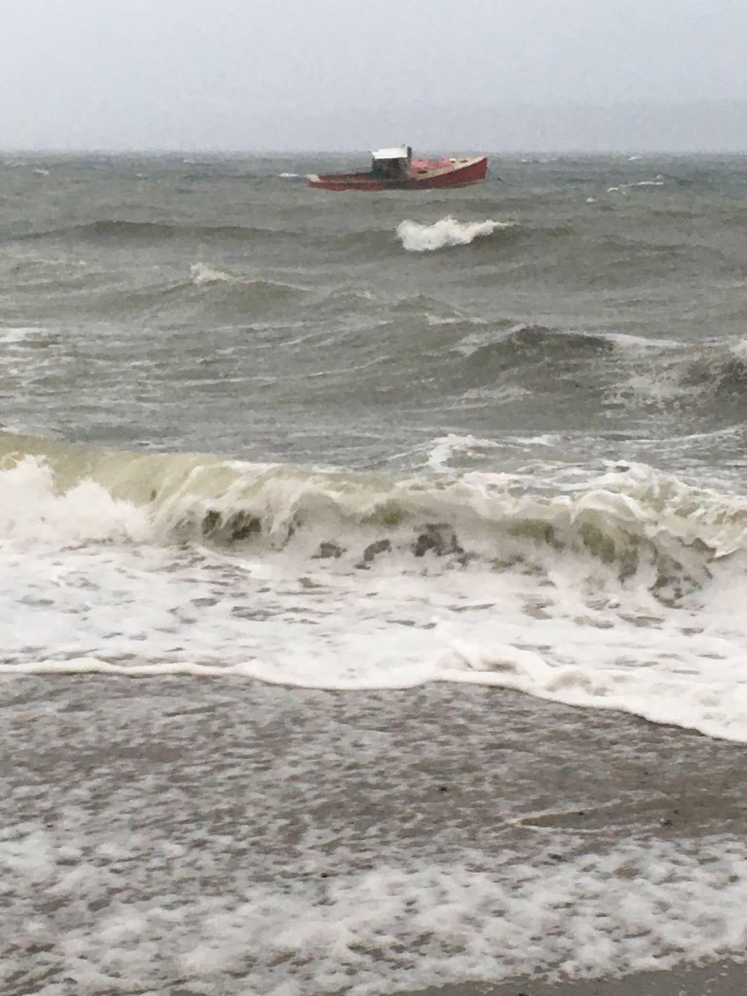 Yeah she had a rough ride--check our last post--but today was fine. Holding on her mooring with wind blowing E maybe 5-10 knots. What a difference a day makes.