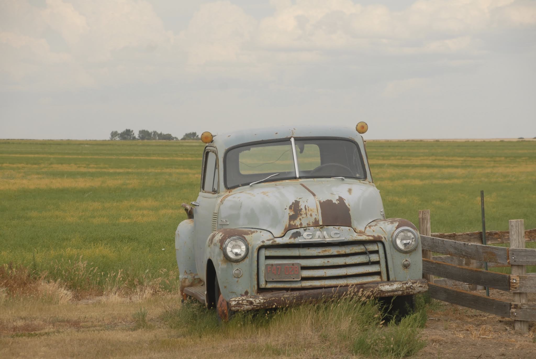 From Alex Emond: This old truck was in front of a farm on a range road south east of Swift close to Hodgeville . Mucha pàtina."