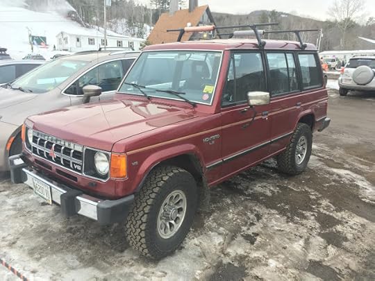 Mistook this at first for an Isuzu Trooper, which were plentiful in California in the late 80s; maybe the first real SUV? Mitsubishi was maybe a step up in quality from the Trooper, though Japanese auto steel was ever a good bet. This truck, however, looked to be amazingly clean and solid for a 31-year-old 4WD. Maybe it spent its formative years somewhere sunnier than Maine, like those 4WDs we used to see being paraded up and down Coast Village Road in Santa Barbara by mamas wishing to project an outdoorsish gestalt in the world's mildest climate,In the real-deal department, check out our friend Toby Clark's beloved Mitsubishi Jeep, which for all we know shares some bones with the handsome Montero.