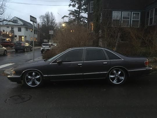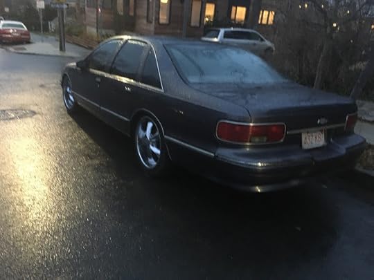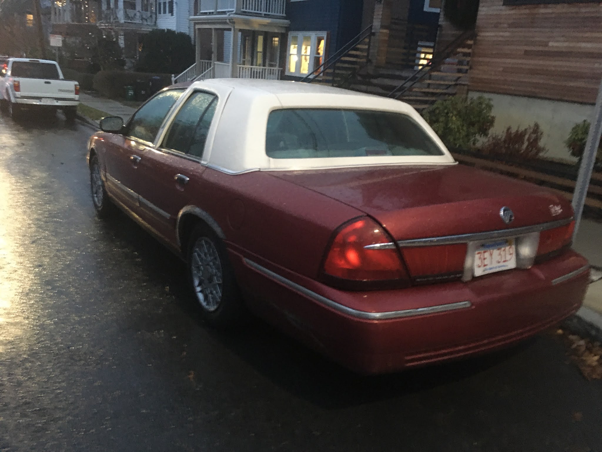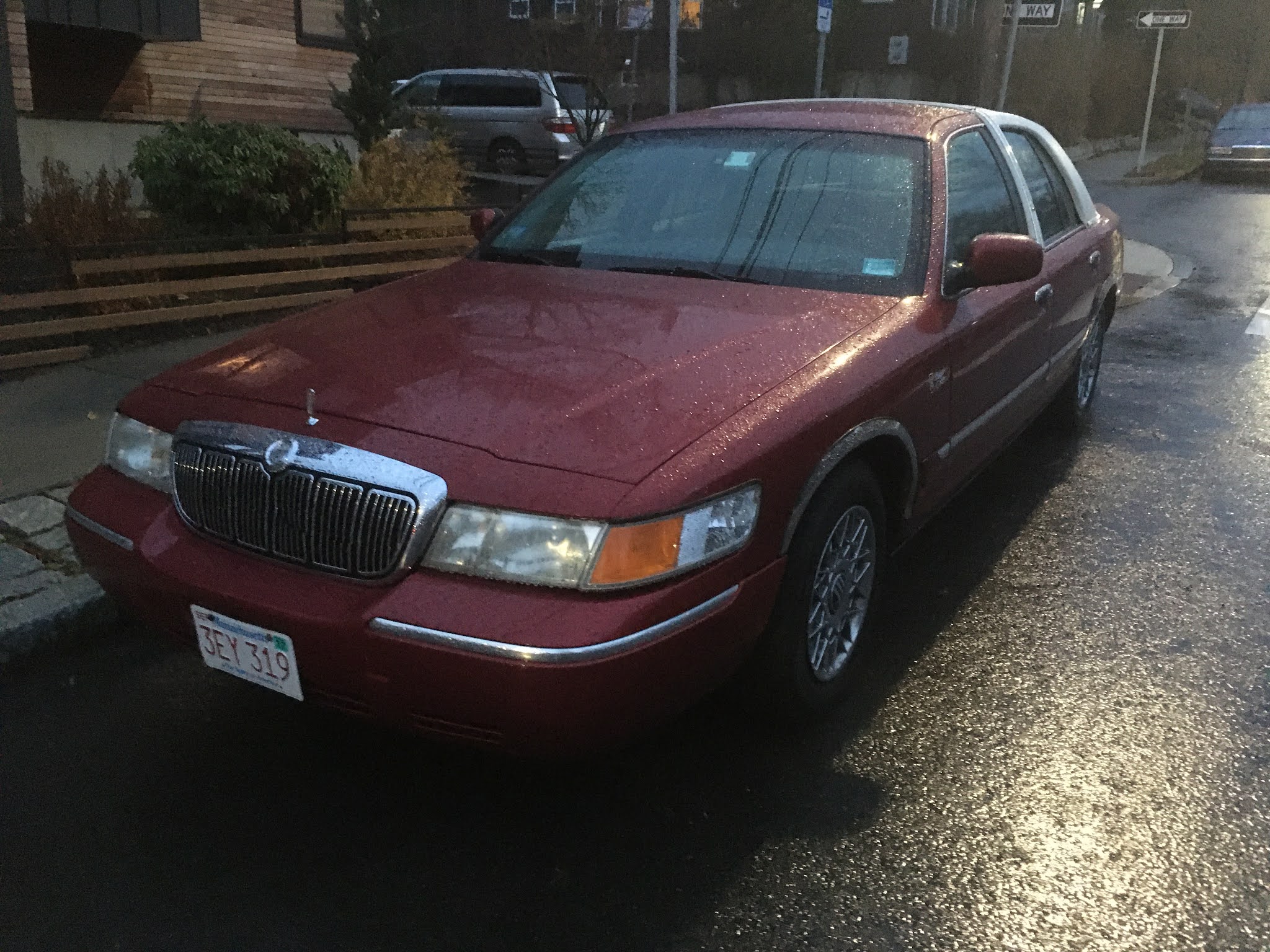 Someone's doing an hommmage to last-gasp Large Cars of the Nineties. I found these two beauties--a Chevrolet Caprice and a Mercury Park Lane--next to each other on a Cambridge evening sparkling with streetlight and drizzle.