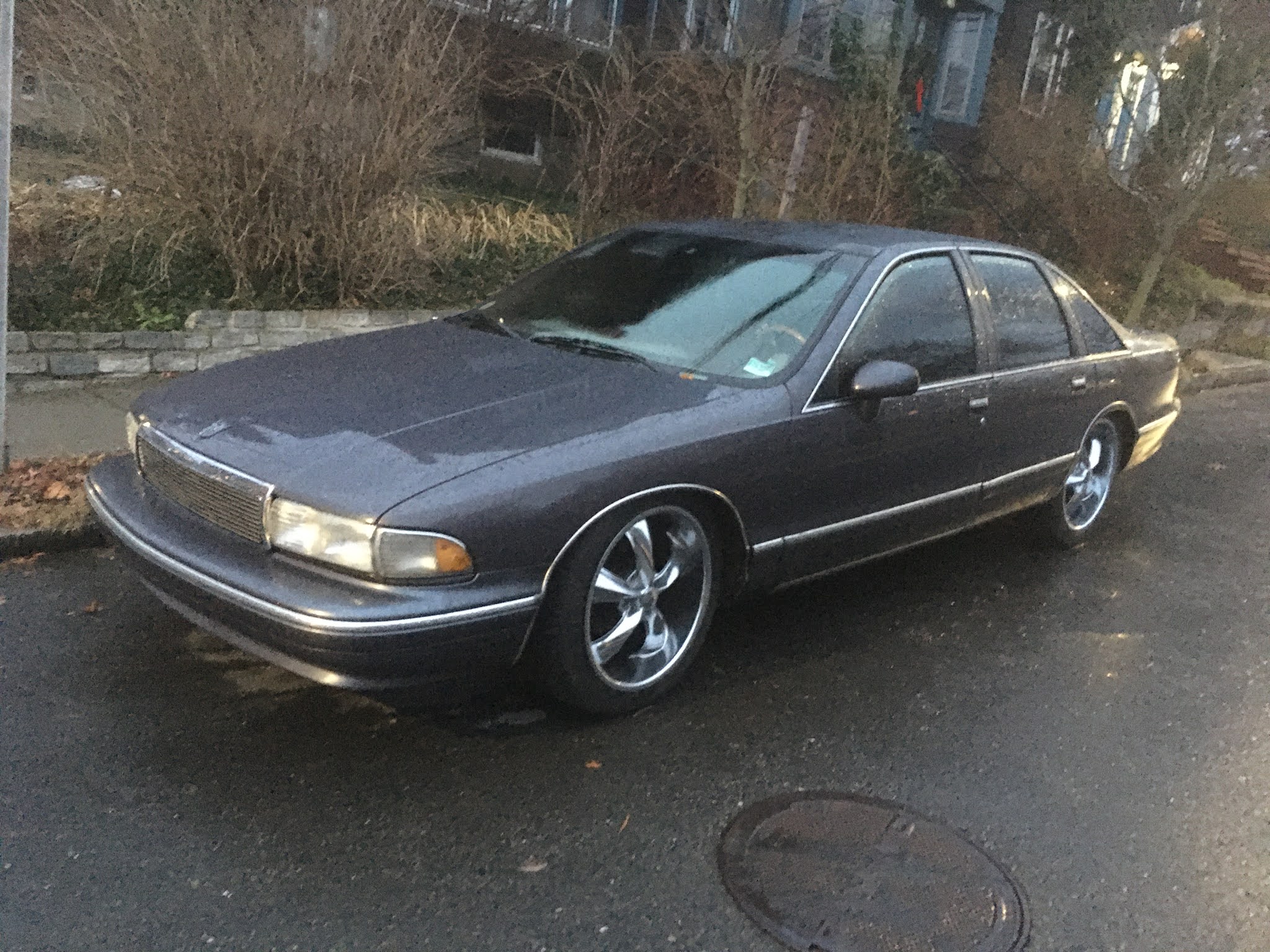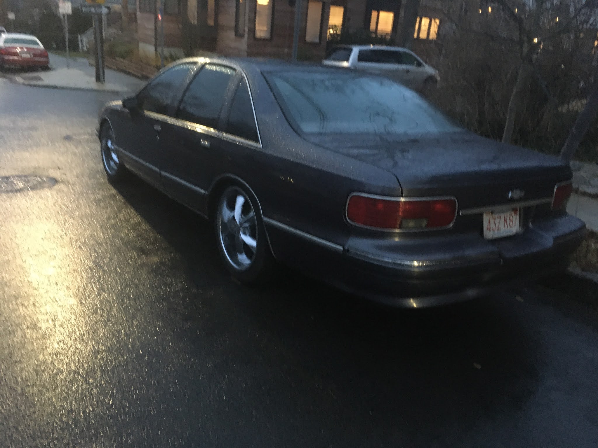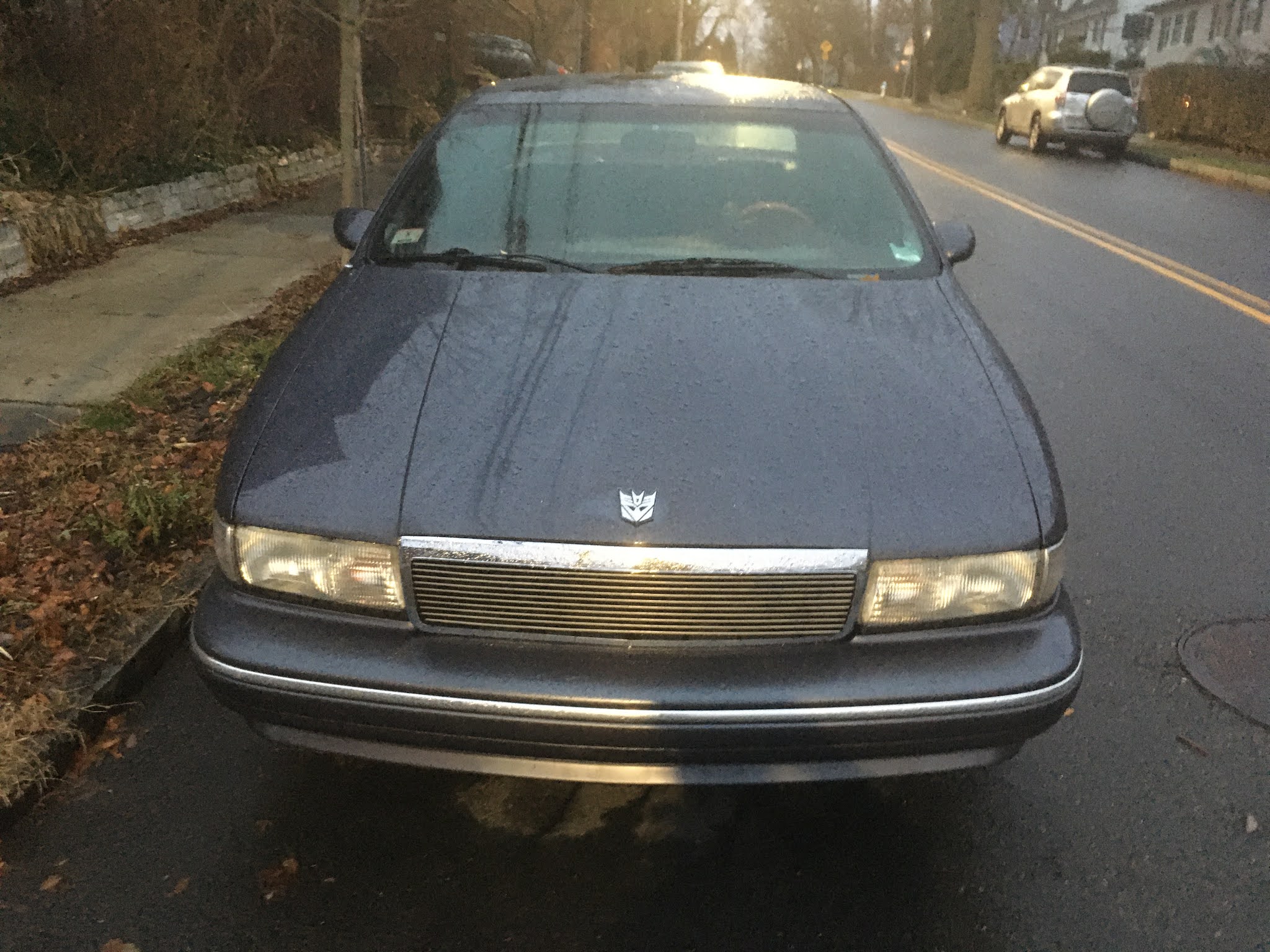 Someone's doing an hommmage to last-gasp Large Cars of the Nineties. I found these two beauties--a Chevrolet Caprice and a Mercury Park Lane--next to each other on a Cambridge evening sparkling with streetlight and drizzle.